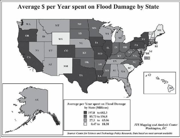 The following two pictures illustrate statistical data on the average spending due to flood